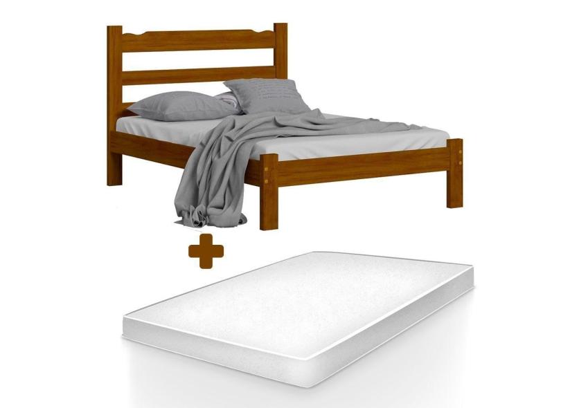 Cama Casal Madeira Esmeralda Imbuia Nemargi Com Colchão Casal