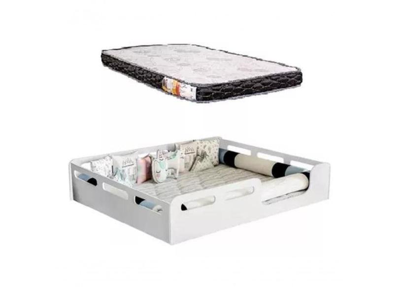 Cama Casal Montessoriana Camila 100% MDF + Colchão Casal 188x138x12 Cm Branca