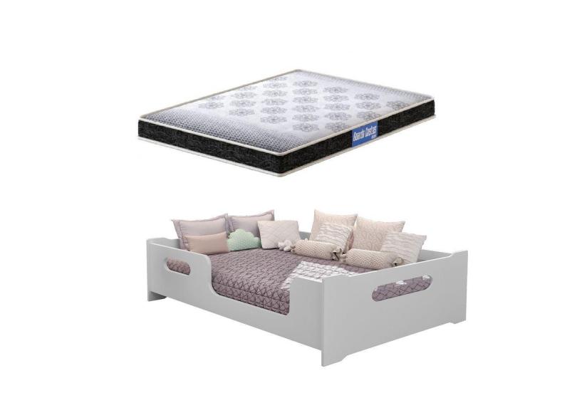 Cama Casal Montessoriana Encanto 100% Mdf Com Colchão Probel 188x138 -Branca