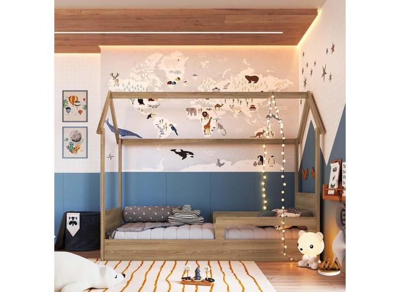 Cama Casinha Montessori Solteiro Aveiro Oak Sorriso Jm Móveis