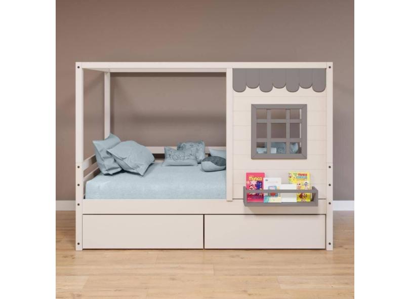 Cama Casinha Reta com 02 Gavetas Madeira Maciça Branco/ Cinza Housin