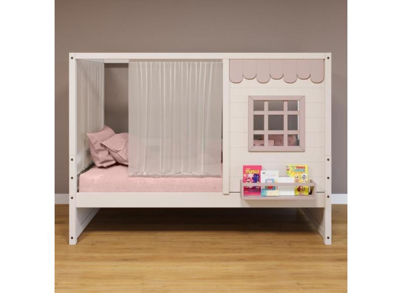 Cama Casinha Reta com Cortina Madeira Maciça Branco/ Rosa Housin
