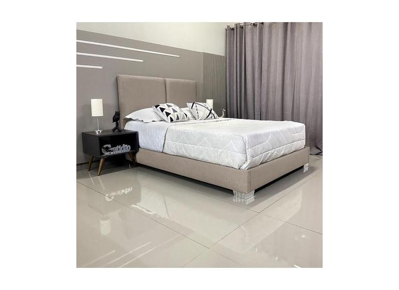 Cama Com Cabeceira Almofadada Módena Linho Bege Rbl Queen 1,60 X 2,00