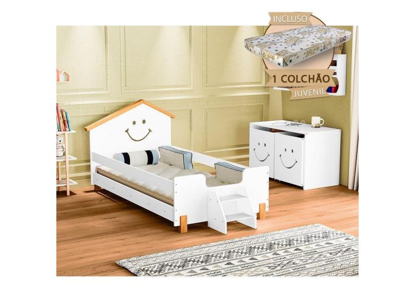 Cama Com Colchão Juvenil Smile AlegraBranca E Mel Branco