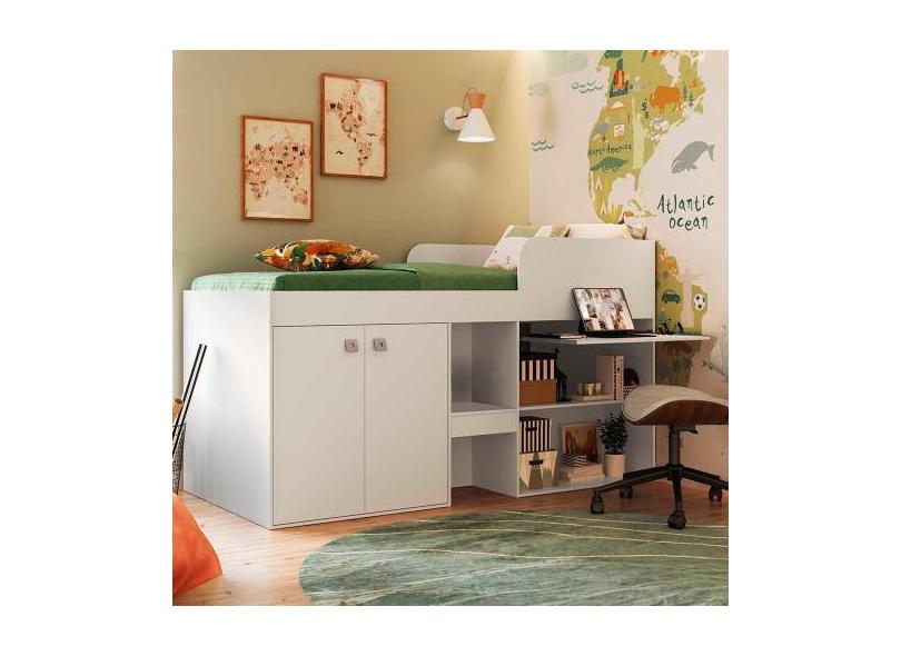 Cama Com Escrivaninha Solteiro Branco Monterey Art In Móveis