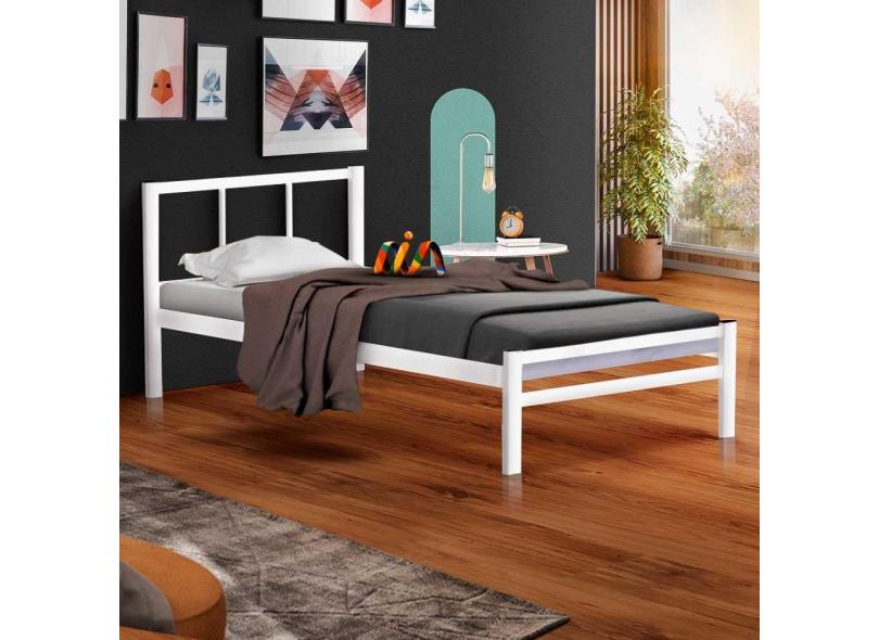 Cama De Aço Solteiro Tubular 0.78 Branca Jane Shop JM