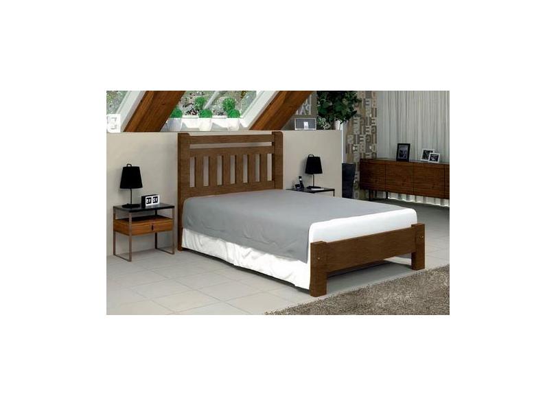 Cama De Casal Bari De Madeira Maciça Angelim Pedra/Tauari - Cor Imbuia