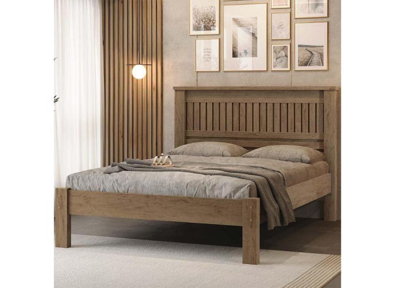 Cama De Casal Com Cabeceira 100% MDF Castanho Mônaco Fênix