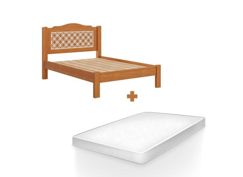 Cama de casal com cabeceira e colchão off white