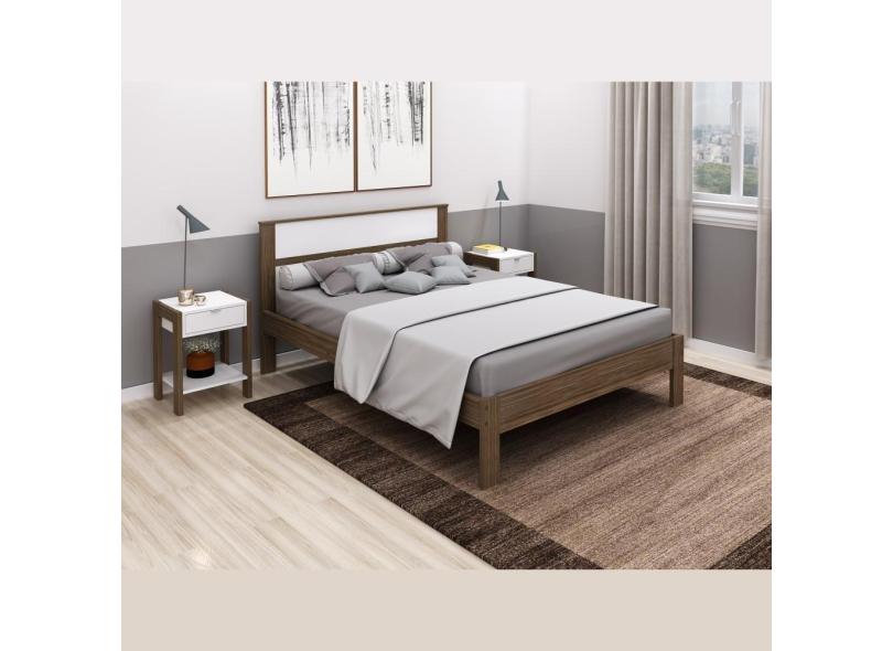 Cama de Casal Grande 196 cm Com Cabeceira Quarto Adulto Nogal Marrom Madeira Branco