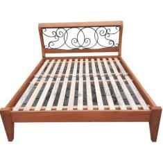 Cama de Casal Milani em Madeira de Demolição e Ferro - Cód 2558 - Barr