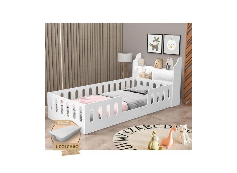 Cama de Criança Helo Solteiro com Colchão + Nicho e Led Branca - DIVAL