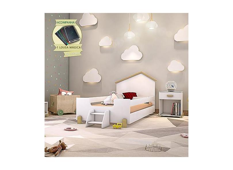 CAMA DE CRIANÇA INFANTIL COM ESCADINHA SOLTEIRO AYLA - BRANCA E NATURAL INCLUSO LOUSA MÁGICA