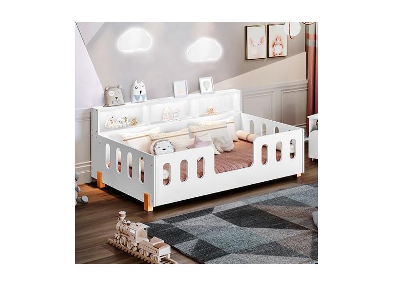 Cama De Criança Infantil Montessoriana Led Nina Com Nicho - Branco - D
