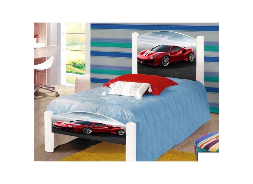 Cama de Criança Infantil Solteiro Adesivada Carro Vermelho