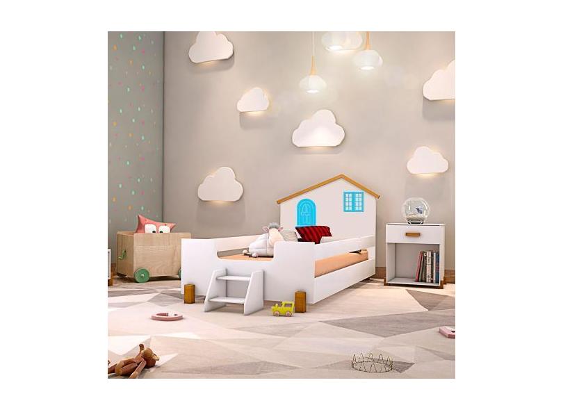 Cama De Criança Infantil Solteiro Belissima Azul - Branco E Mel - Diva