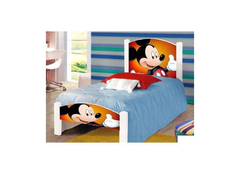 Cama De Criança Infantil Solteiro Mickey Adesivada Com Grade De Proteç