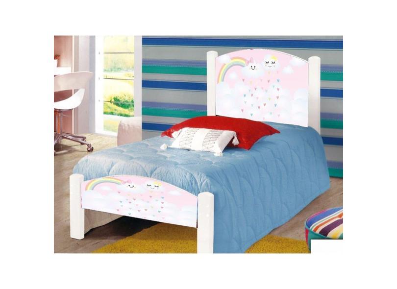 Cama de Criança Infantil Solteiro Nuvem Rosa Adesivada com Grade de Proteção e Colchão