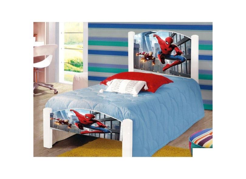 Cama de Criança Solteiro Infantil Homem Aranha Adesivada com Colchão