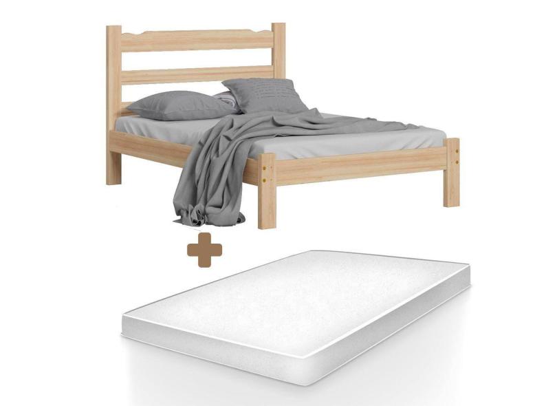 Cama de Madeira Crua Esmeralda Com Colchão para Casal
