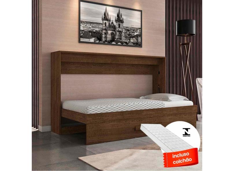 Cama De Parede Dobrável Solteiro Horizontal Com Colchão Malbec Framar