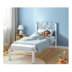 Cama de Solteiro 100% Aço Branca Estrado em Pinus Marcheli 002