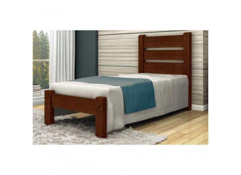 Cama de Solteiro Berlim de Madeira Maciça Angelim Pedra Tauari Castanho