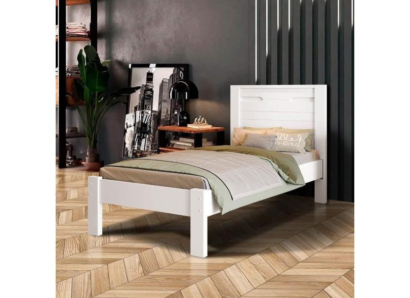 Cama De Solteiro Com Cabeceira 100% Mdf Branco Fege Jm Móveis