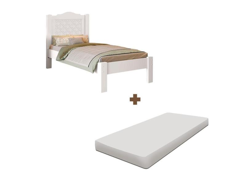 Cama De Solteiro Com Colchão E Cabeceira 100% MDF Branco Munique Fênix