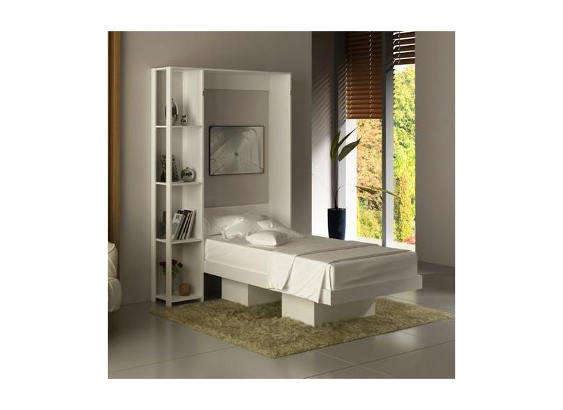 Cama De Solteiro Com Estante Lateral 128X198cm Branco Tecno Mobili