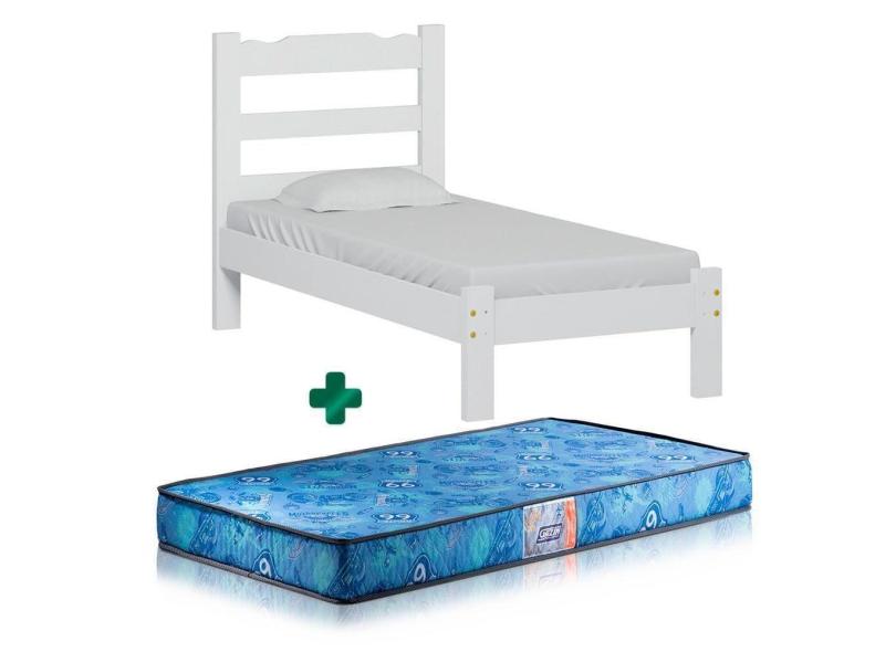 Cama De Solteiro De Madeira Branco Esmeralda Nemargi Com Colchão Gazin