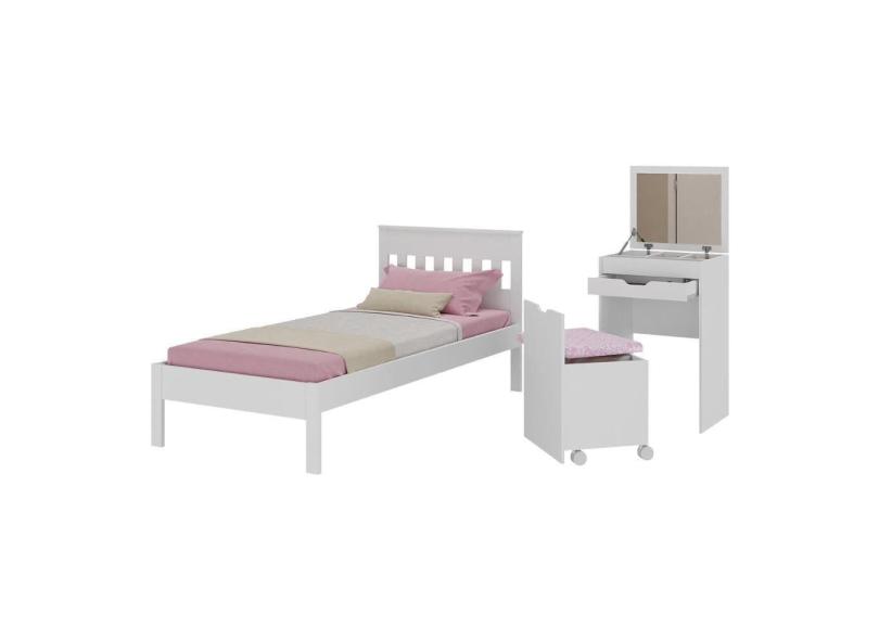 O menor preço encontrado no Brasil para Cama De Solteiro Para Colchão 88 X 188 Cm Com Penteadeira 54cm E Puff Multimóveis CR40121 Branco atualmente é R$ 985,59.
