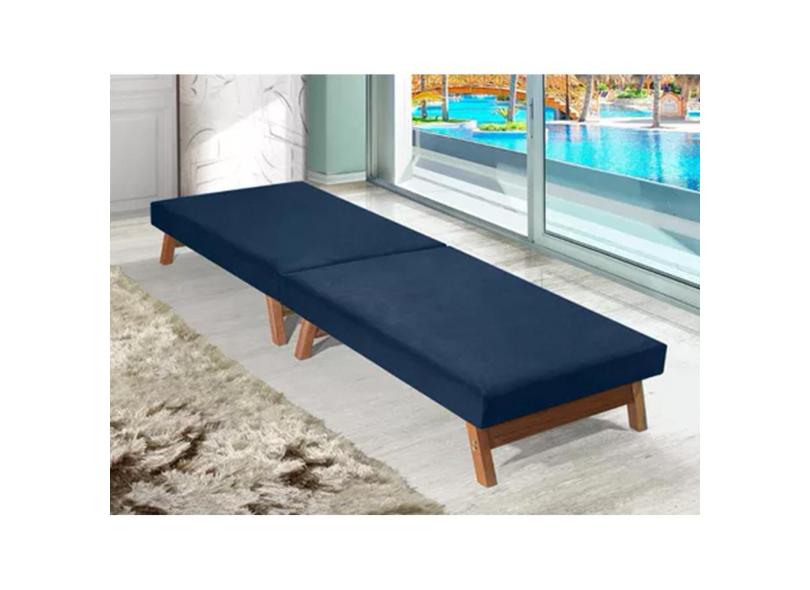 Cama Dobrável Pés de Madeira Maciça 1,70 X 0,60 Azul