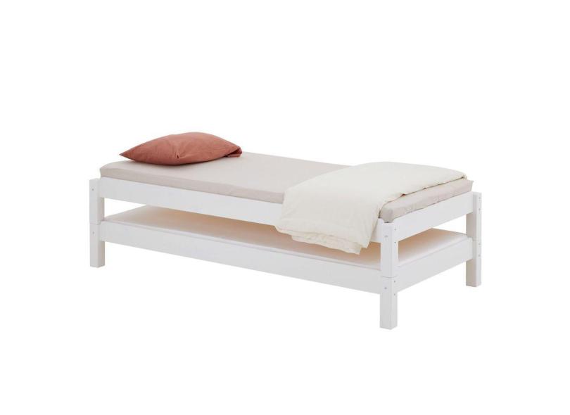 Cama Dupla Solteiro Menor Compacta Praia Madeira Maciça com Estrado Rino Branco Lavado