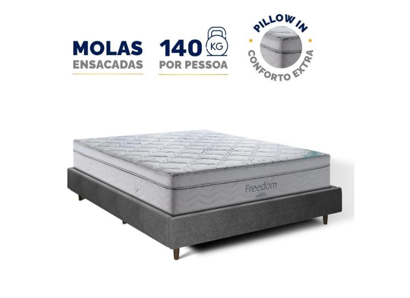 Cama Genebra Bouclé com Colchão de Molas Ensacadas D33 Pillow In Ortobom Freedom Casal 138cm