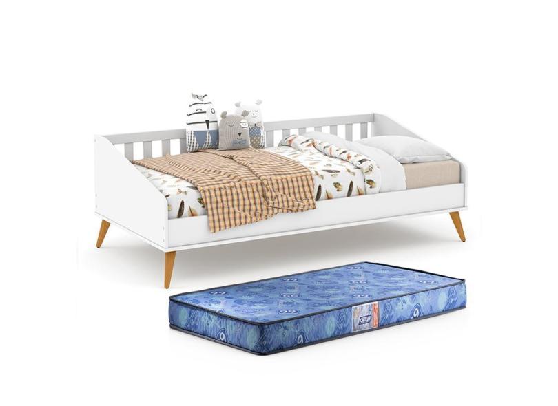 Cama Infantil Babá Retrô New com Colchão Supreme D20 - Matic Móveis Branco Soft/Eco Wood