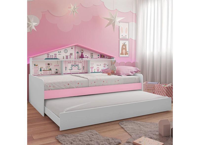 Cama Infantil Casa de Boneca Diversão com Cama Auxiliar Branco Rosa Pura Magia