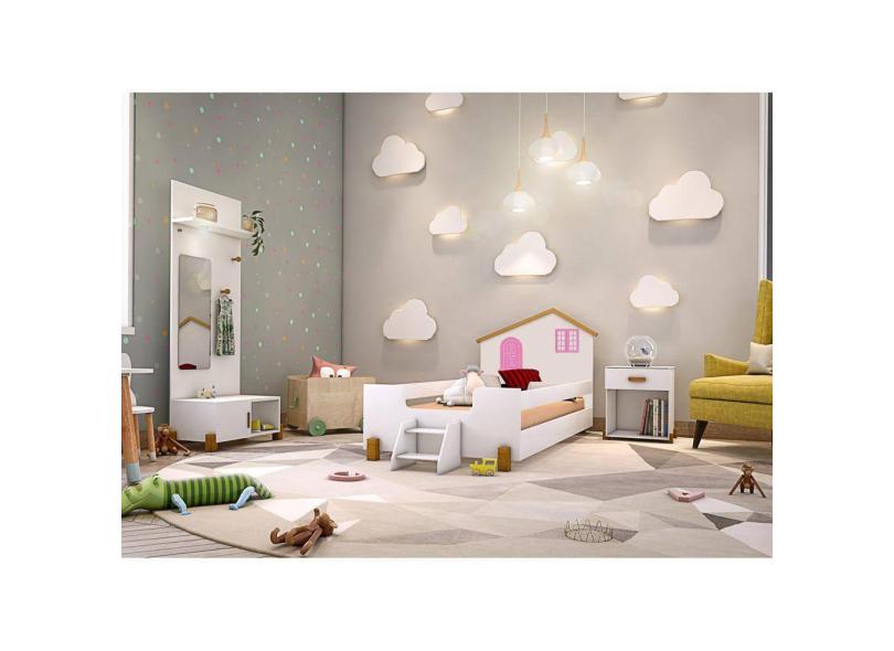 Cama Infantil Casinha Branca Marrom e Rosa com Colchão Divaloto