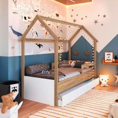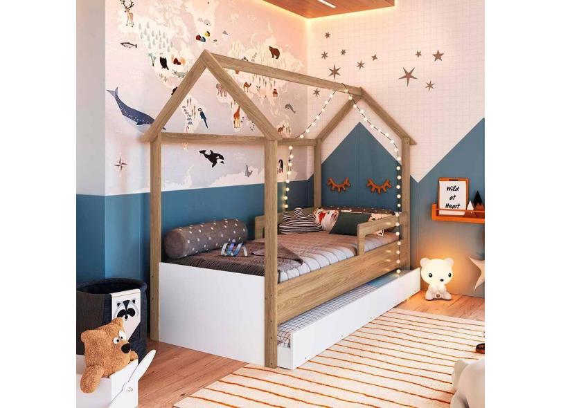 O menor preço encontrado no Brasil para Cama Infantil Casinha Com Auxiliar E 2 Colchões Aveiro Oak Branco Sonho Completa Móveis atualmente é R$ 1.499,90.