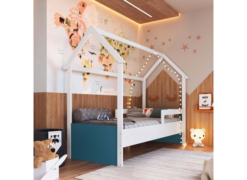 Cama Infantil Casinha Solteiro Branco Azul Secreto Sonho Completa Móveis