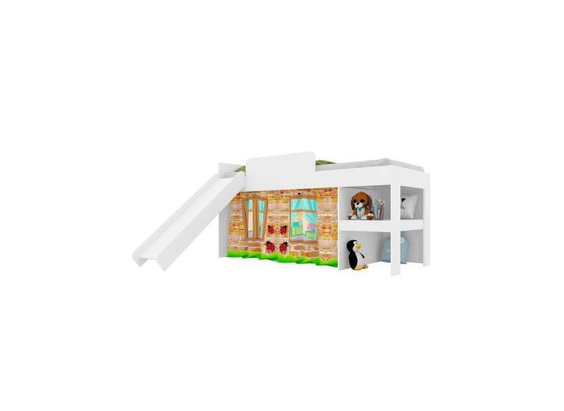 Cama Infantil Com Escorregador E Cortina 90 Playground Branco - Art in