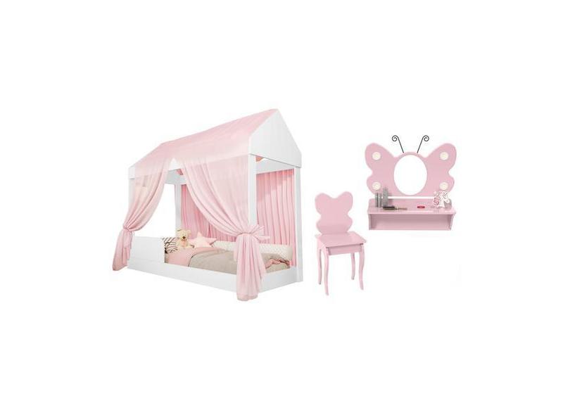 Cama Infantil Crystal Com Penteadeira Camarim Rosa E Luz De Led - Loja