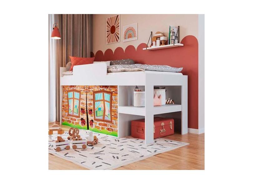 Cama Infantil Elevada Com Cabaninha Solteiro Branco Imaginação Art In