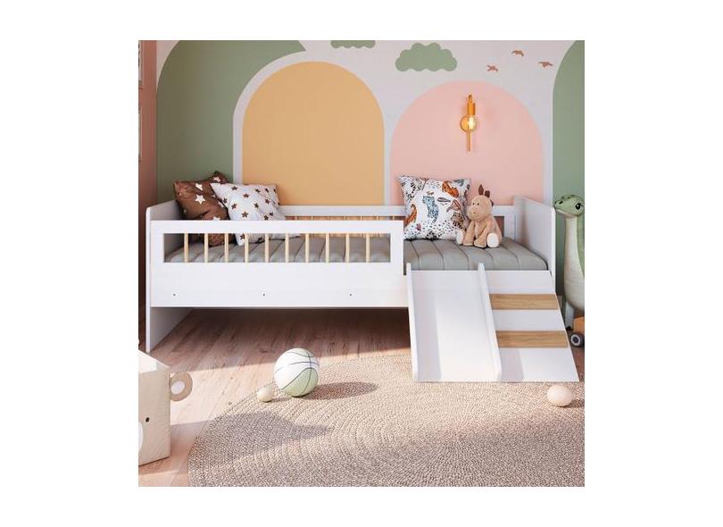 Cama Infantil Montessoriana Affetto Com Escada E Escorregador Branco -