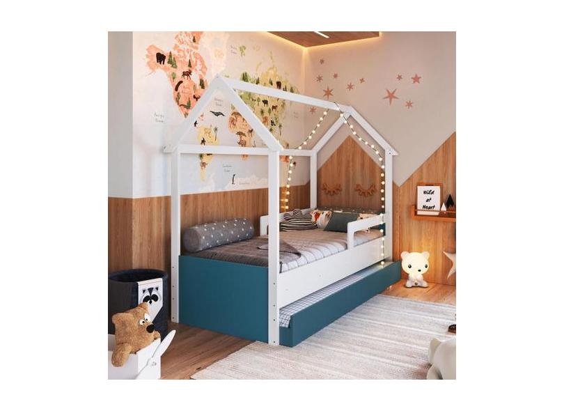 O menor preço encontrado no Brasil para Cama Infantil Montessoriana Com Cama Auxiliar Branco E Azul - Completa atualmente é R$ 1.308,95.