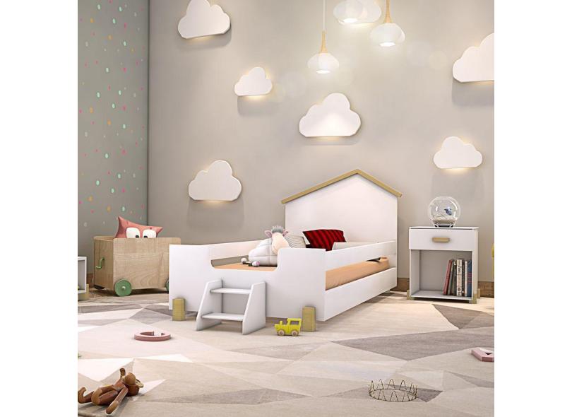 Cama Infantil Montessoriana Com Escadinha Juvenil Ayla - Branca E Natural - Cor: Branco