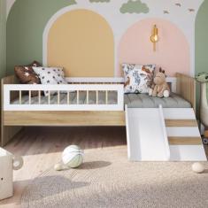 Cama Infantil Montessoriana Com Grade E Escorrega Affetto Marrom Branc