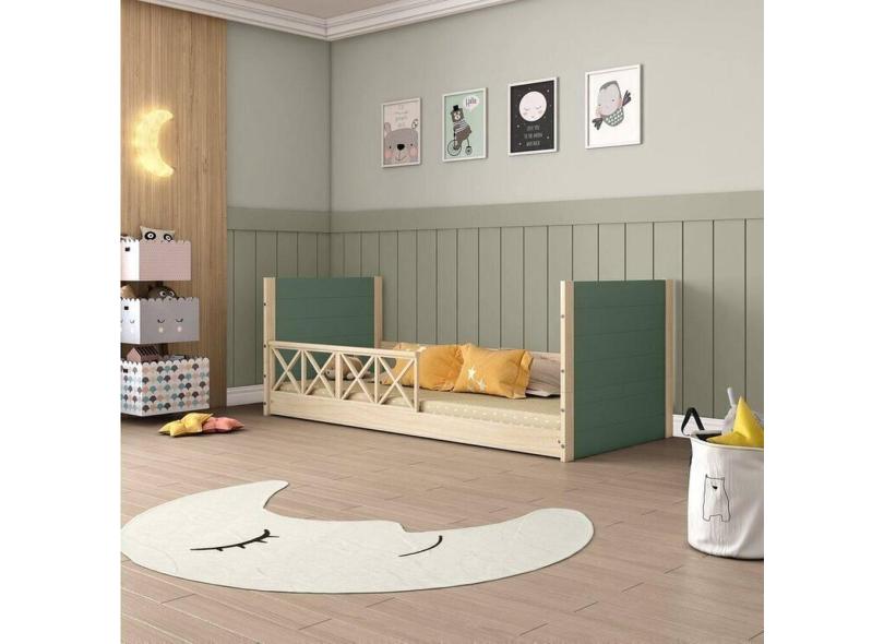 Cama Infantil Montessoriana Garden com Grade Dupla Casatema Verde/Natural