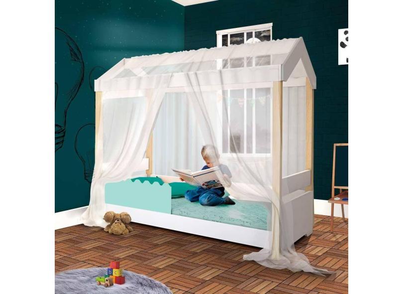 Cama Infantil Montessoriana Solteiro Menta Com Voal Branco Divaloto