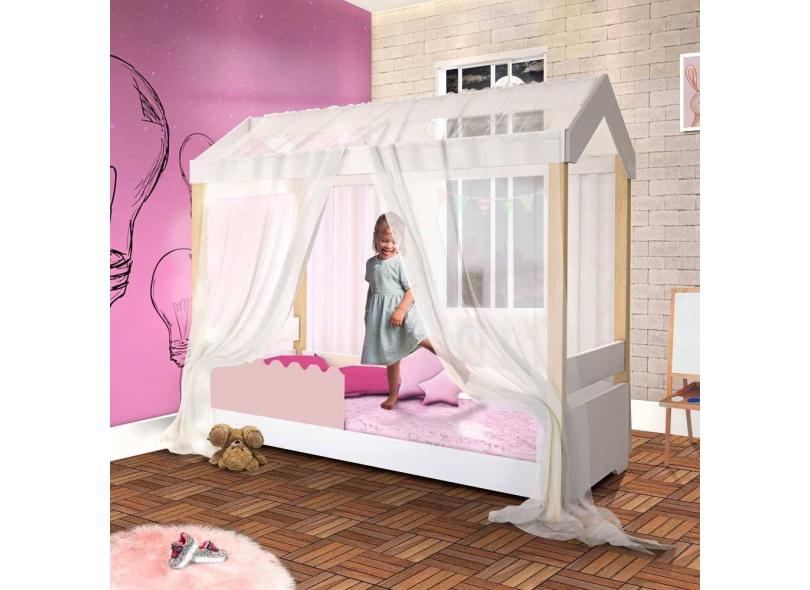 Cama Infantil Montessoriana Solteiro Rose Com Voal Branco Divaloto